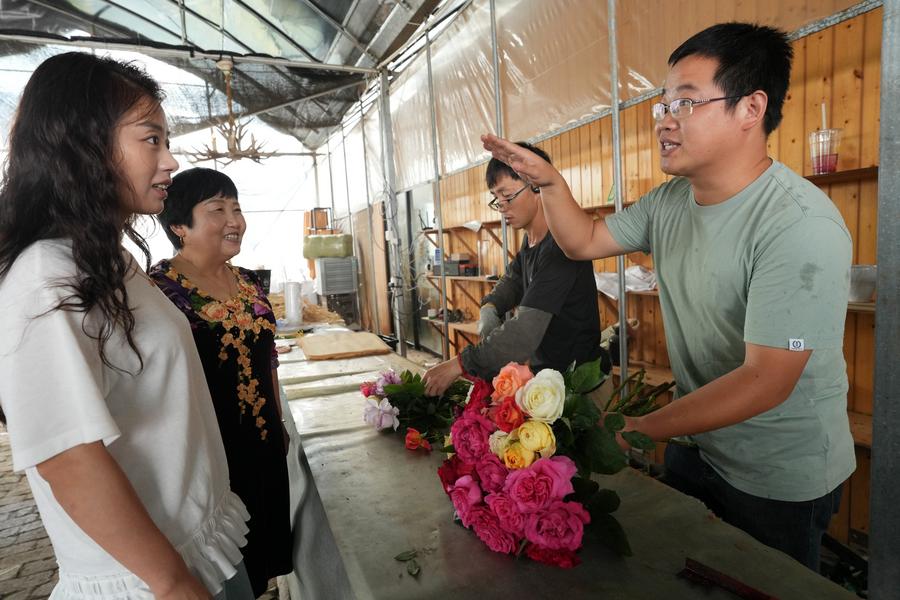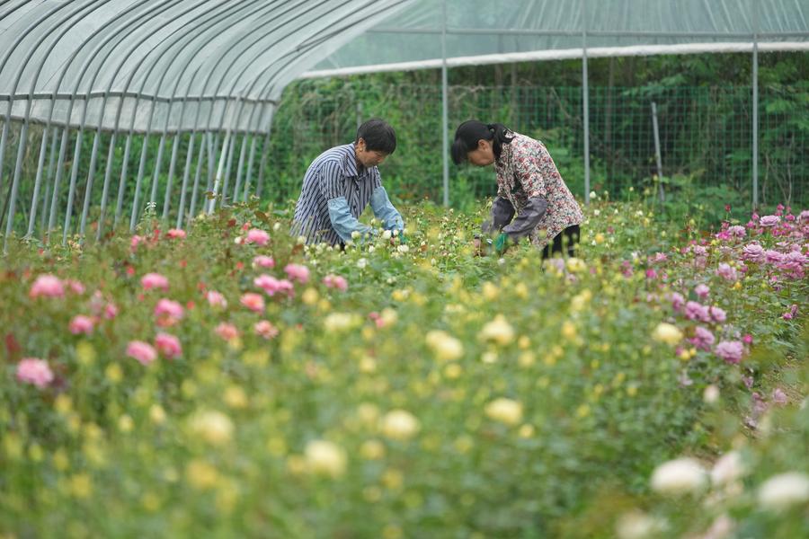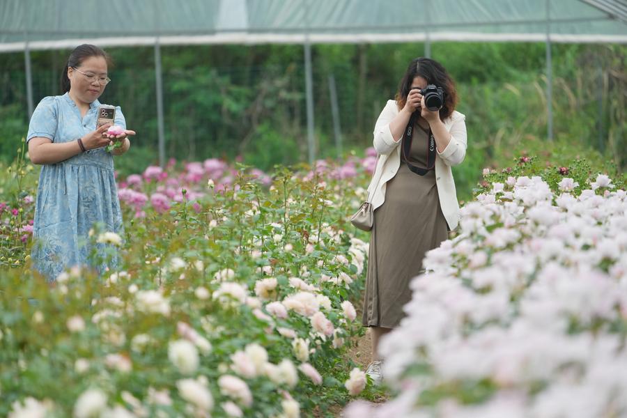 Zhan and Liu now operate two production bases covering a planting area of over 40 mu (about 2.67 hectares), where they grow more than 400 varieties of Rosa Chinensis. They sell fresh-cut flowers through e-commerce platforms and also open the planting base for sightseeing and flower-picking. During flower seasons in spring and autumn, the garden attracts an average of 500 daily visitors, creating annual sales exceeding 2 million yuan (about 273,000 U.S. dollars). The planting base also creates job opportunities for local farmers.