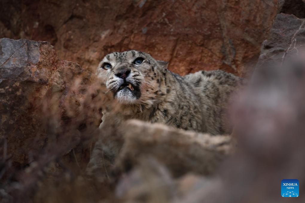 A snow leopard is pictured in Gerze County of Ngari Prefecture, southwest China's Xizang Autonomous Region, April 18, 2025. Known as the "king of the snow mountains," the snow leopard is under first-class national protection in China, and is listed as vulnerable by the International Union for Conservation of Nature. (Photo by Sonam Rinchen/Xinhua)