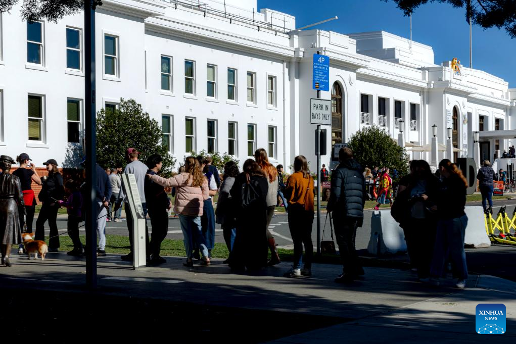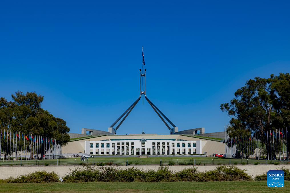 This photo shows the Australian Parliament House in Canberra, Australia, May 3, 2025. Australia's election day has arrived with millions of voters expected to cast their ballots to decide the composition of the 48th federal parliament. (Photo by Chu Chen/Xinhua)