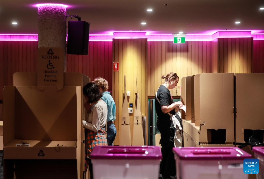 Voters are seen at a voting center of Australia's federal election in Sydney, Australia, May 3, 2025. Australia's election day has arrived with millions of voters expected to cast their ballots to decide the composition of the 48th federal parliament. (Xinhua/Ma Ping)