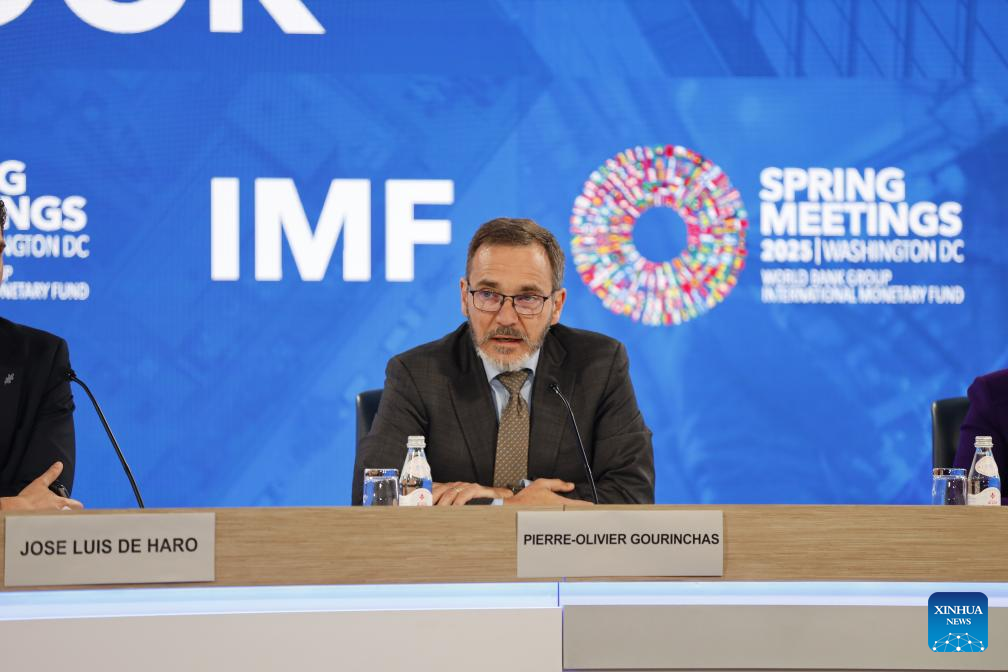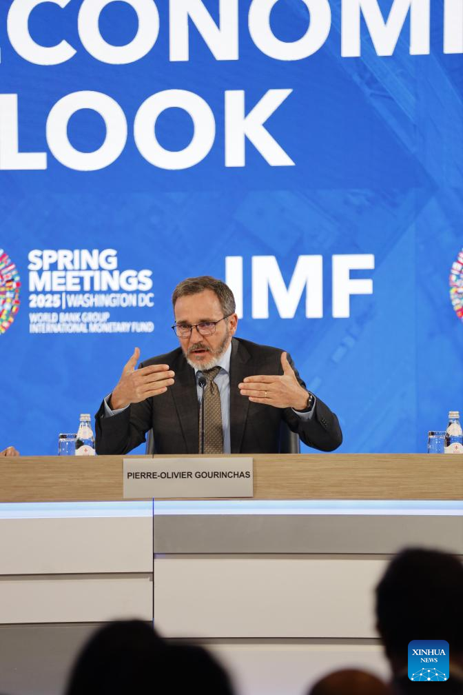 IMF Chief Economist Pierre-Olivier Gourinchas speaks at a press briefing on World Economic Outlook (WEO) in Washington, D.C., the United States, on April 22, 2025. (Xinhua/Xie E)