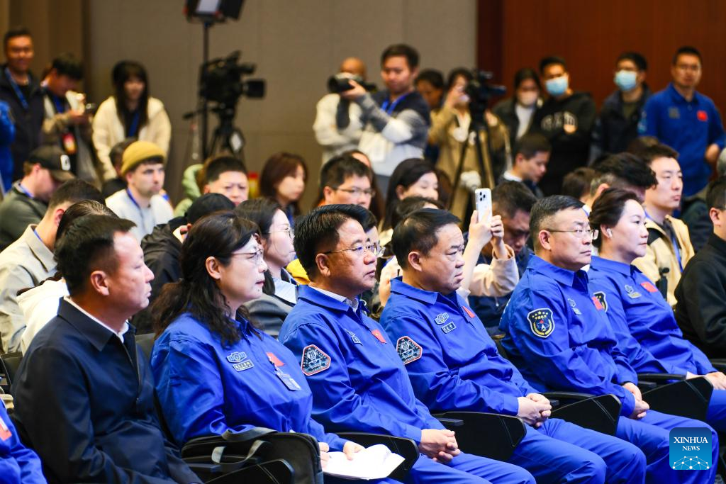 A press conference on the Shenzhou-20 crewed spaceflight mission is held in Jiuquan Satellite Launch Center in northwest China on April 23, 2025. (Xinhua/Bei He)