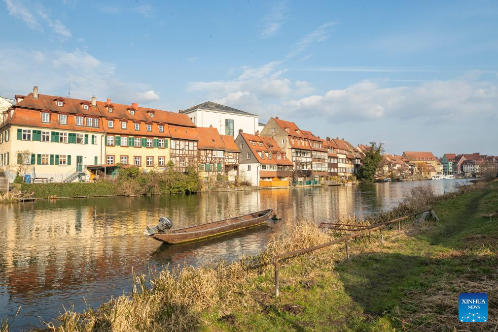 This photo taken on March 23, 2025 shows a view of Regnitz River in the ancient town of Bamberg in Bavarian state, Germany. Bamberg in Germany and Shexian in China show how towns with a remarkable history can thrive today.