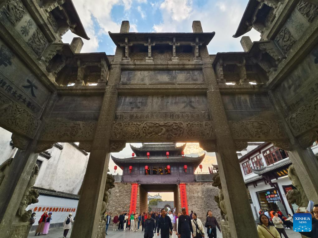 Tourists visit Xuguo stone archway in Huizhou ancient town of Shexian County, east China's Anhui Province, March 18, 2025. Bamberg in Germany and Shexian in China show how towns with a remarkable history can thrive today.