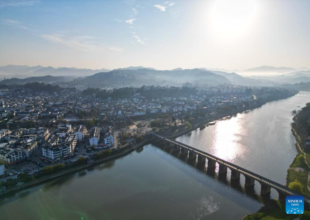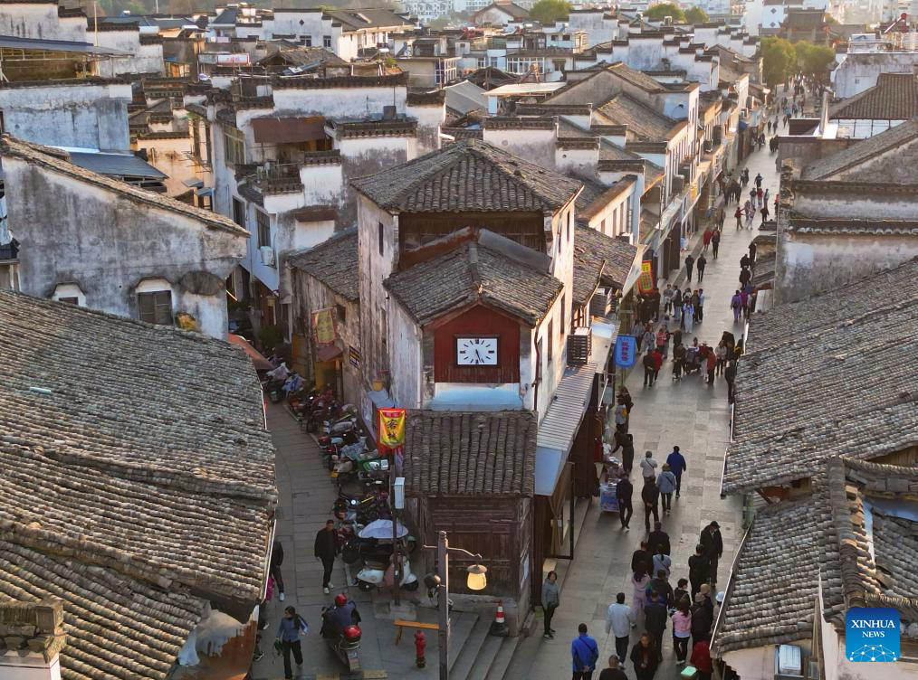 An aerial drone photo taken on March 19, 2025 shows the Yanghe Gate of Huizhou ancient town in Shexian County, east China's Anhui Province. Bamberg in Germany and Shexian in China show how towns with a remarkable history can thrive today.