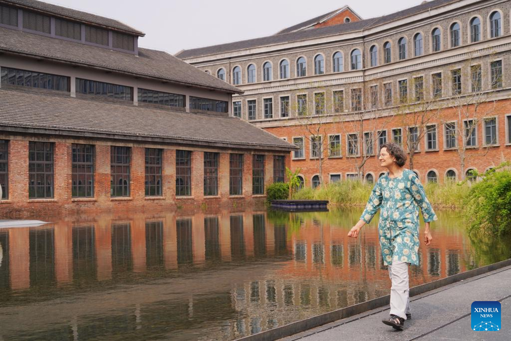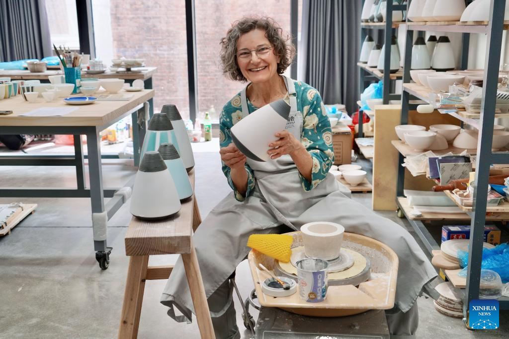 German ceramic artist Karin Flurer-Bruenger is pictured at Taoxichuan Ceramic Art Avenue in Jingdezhen, east China's Jiangxi Province, April 8, 2025. (Xinhua/Du Juanjuan)