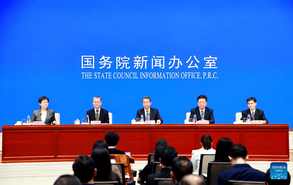 A press conference on China's intellectual property rights development of 2024 is held by the State Council Information Office in Beijing, capital of China, April 24, 2025. (Xinhua/Pan Xu)