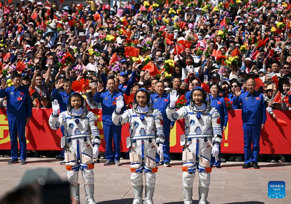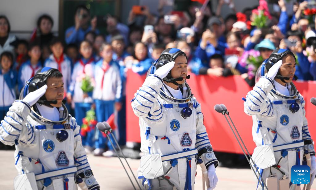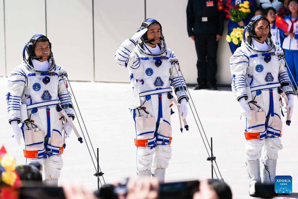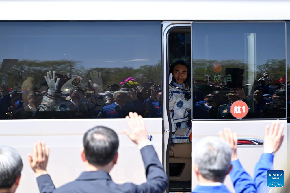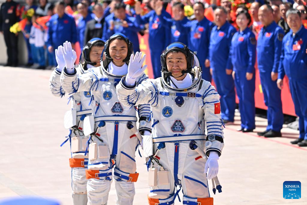JIUQUAN, April 24 (Xinhua) -- A send-off ceremony for the three Chinese astronauts of the Shenzhou-20 crewed space mission was held on Thursday at the Jiuquan Satellite Launch Center in northwest China, according to the China Manned Space Agency.
