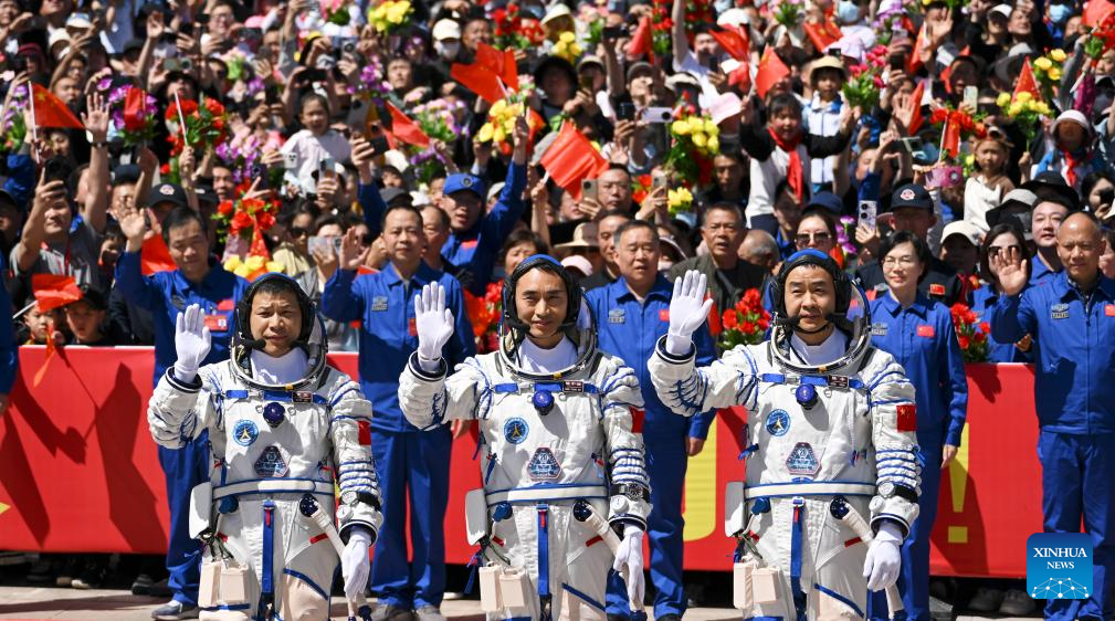 A send-off ceremony for the three Chinese astronauts of the Shenzhou-20 crewed space mission was held here on Thursday, according to the China Manned Space Agency. (Xinhua/Lian Zhen)