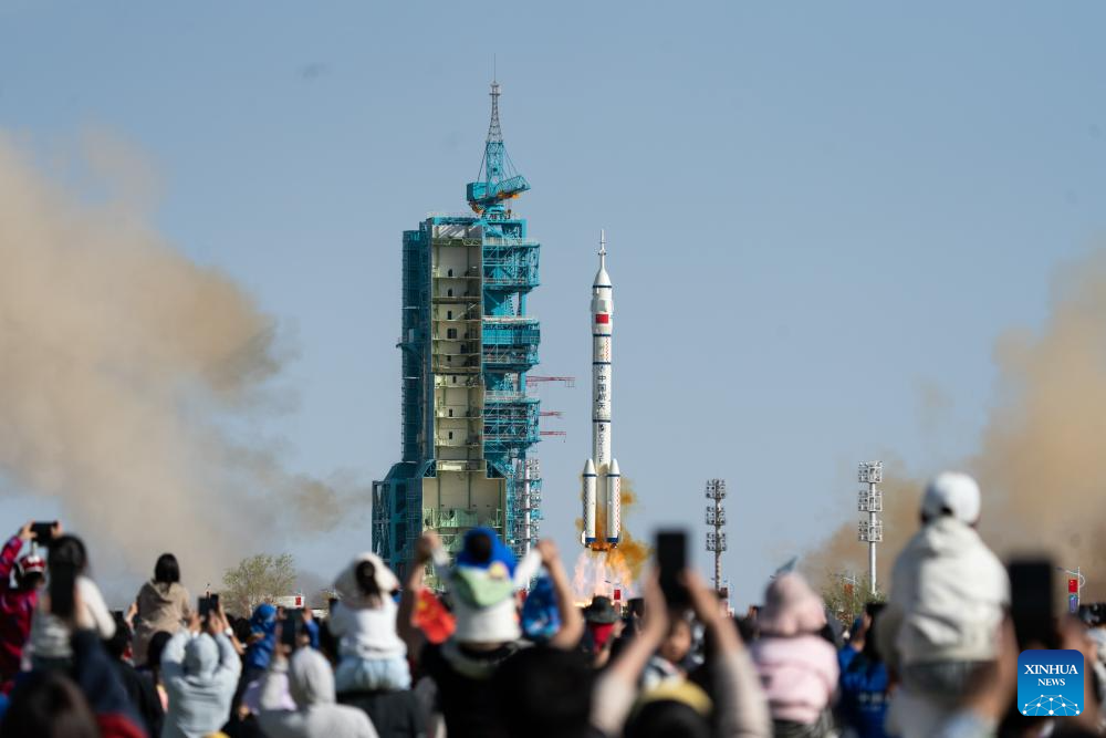 JIUQUAN, April 24 (Xinhua) -- China launched the Shenzhou-20 crewed spaceship on Thursday, sending three astronauts to its orbiting space station for a six-month mission.