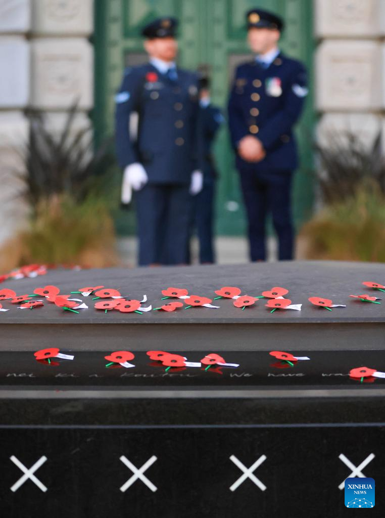 This photo taken on April 25, 2025 shows a scene of the Anzac Day memorial in Wellington, New Zealand. Anzac Day, which falls on April 25, marks the anniversary of the first major military action fought by Australian and New Zealand Army Corps (Anzac) in World War I on Turkey's Gallipoli Peninsula in 1915. (Photo by Meng Tao/Xinhua)