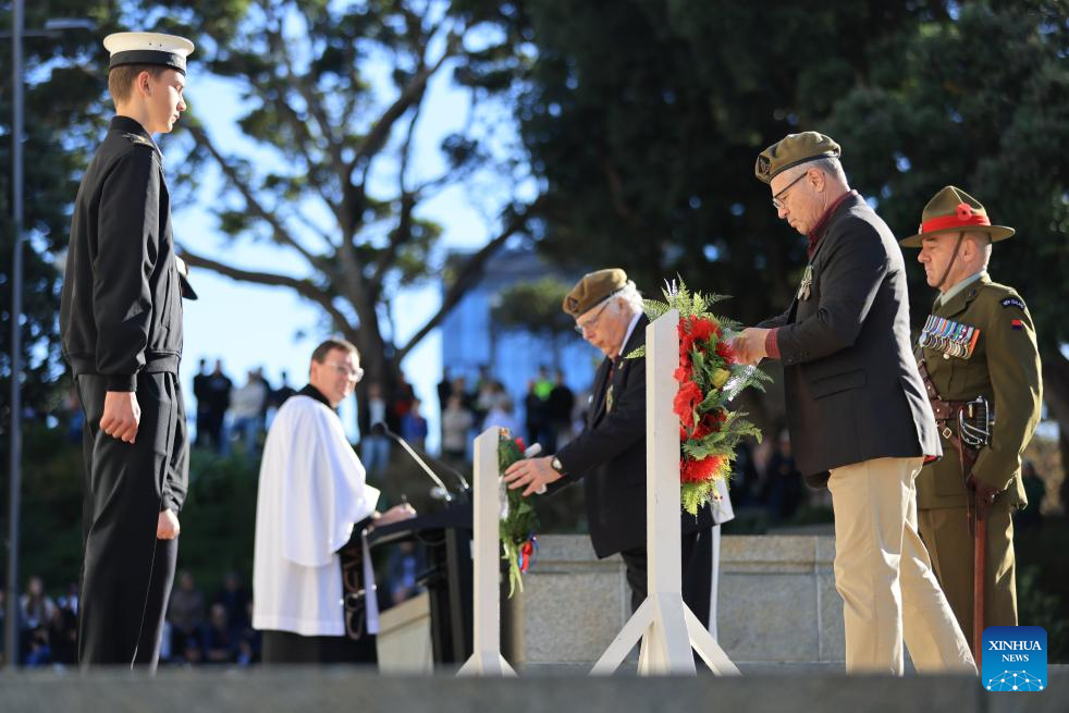 People take part in the Anzac Day memorial in Wellington, New Zealand, April 25, 2025. Anzac Day, which falls on April 25, marks the anniversary of the first major military action fought by Australian and New Zealand Army Corps (Anzac) in World War I on Turkey's Gallipoli Peninsula in 1915. (Photo by Meng Tao/Xinhua)