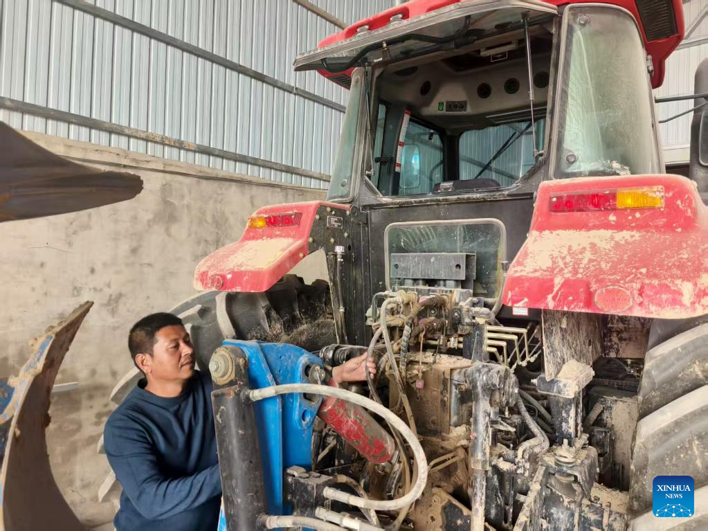 Ding Quanwei reconditions agricultural machinery in Ronghe Township of Wanrong County in Yuncheng City, north China's Shanxi Province, March 26, 2025. (Xinhua/Wang Hao)