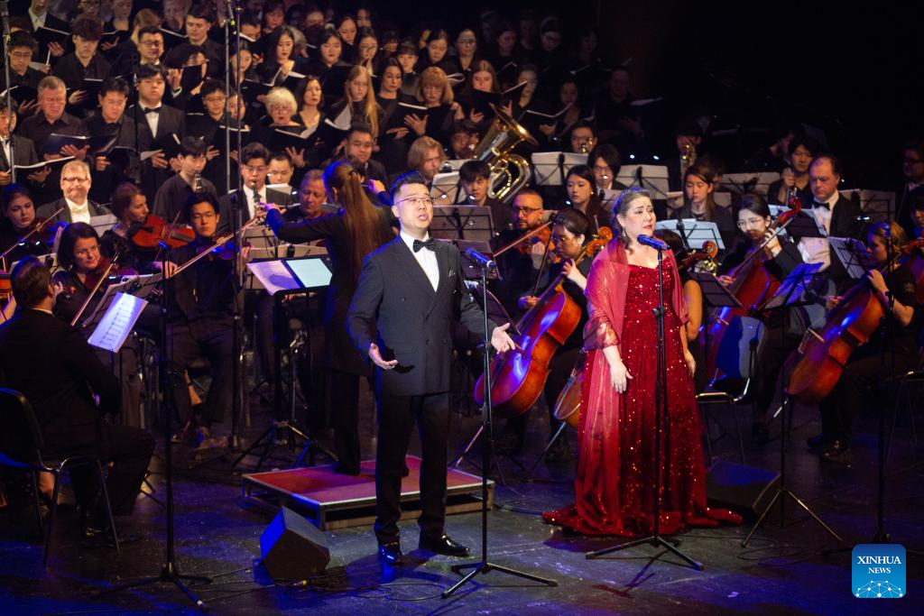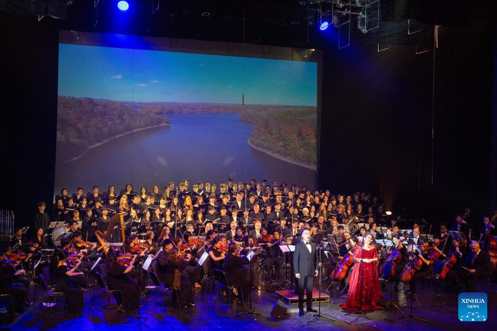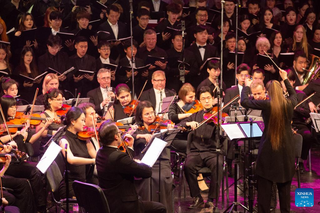 Chinese and Russian musicians perform during a concert marking the 80th anniversary of the victory of the World Anti-Fascist War in St. Petersburg, Russia, April 25, 2025. (Photo by Irina Motina/Xinhua)