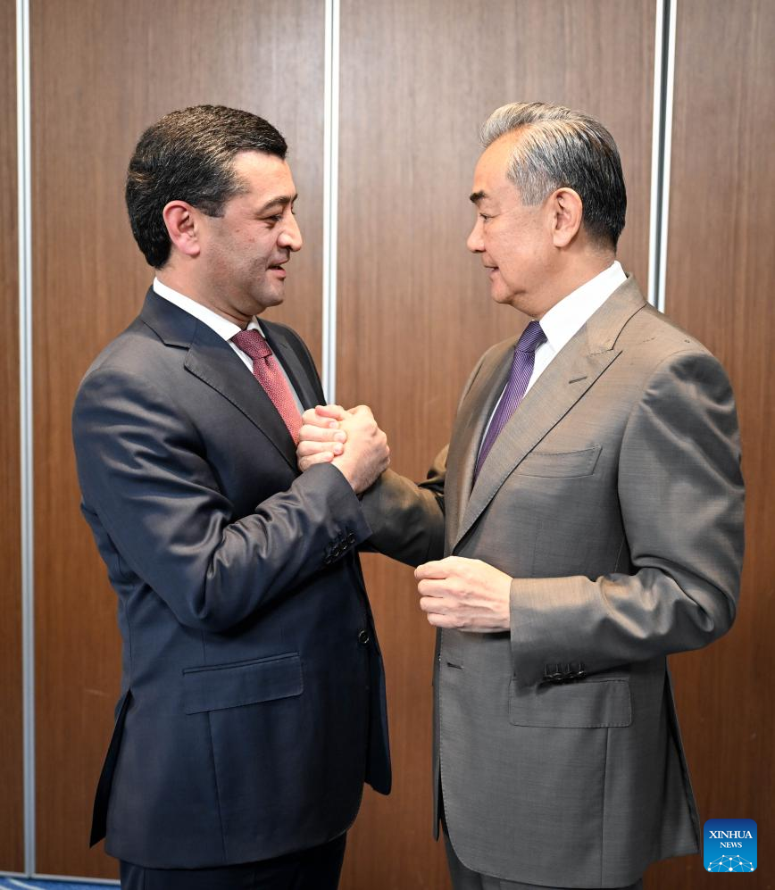 ALMATY, April 25 (Xinhua) -- Wang Yi, member of the Political Bureau of the Communist Party of China Central Committee and Minister of Foreign Affairs, met with his Uzbek counterpart Bakhtiyor Saidov here on Friday.