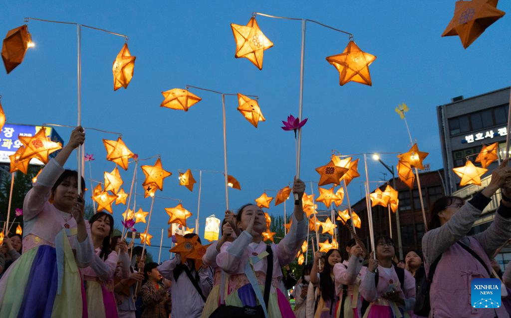 A lantern parade is held in Seoul, South Korea, April 26, 2025. (Xinhua/Yao Qilin)
