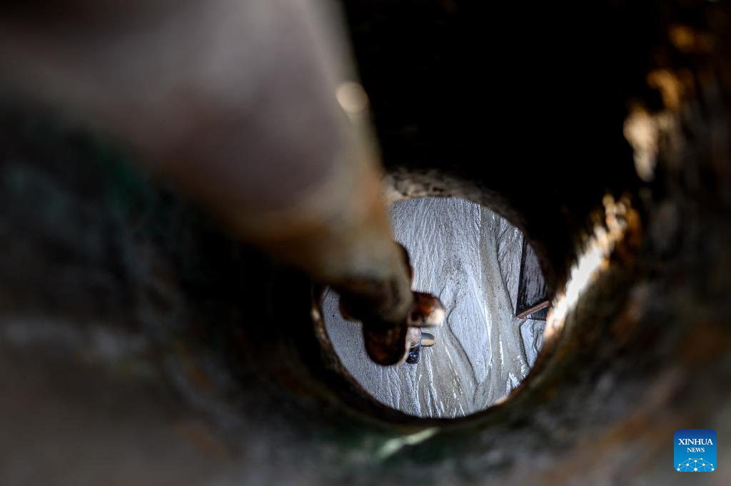 Crew member Jiang Zhengwei checks equipment on the Chinese dredger "Xin Hai Feng" in Klang, Selangor state, Malaysia, March 13, 2025. The Chinese dredger "Xin Hai Feng" is a trailing suction hopper dredger owned by China Communications Construction Company (CCCC) Shanghai Dredging Co., Ltd., with a hopper capacity of 16,888 cubic meters and a total power of 25,643 kilowatts. It is currently one of the largest dredgers of CCCC Shanghai Dredging Co., Ltd.