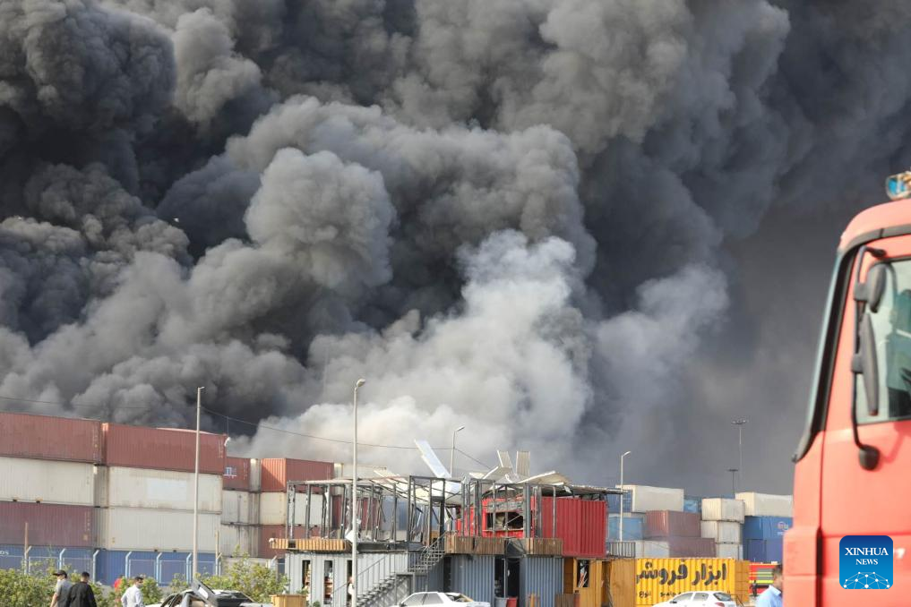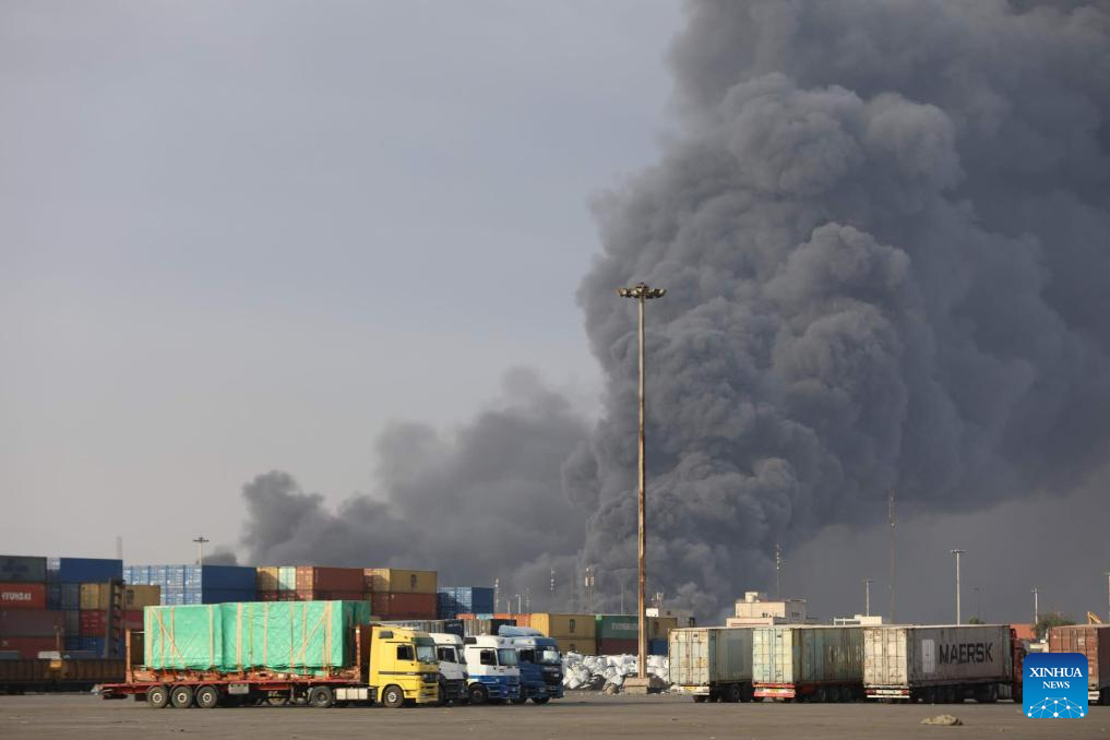 This photo shows the explosion site at Shahid Rajaee Port in Bandar Abbas of Hormozgan province, Iran, April 26, 2025. At least 25 people were killed and 800 others injured in a huge explosion at a port on Saturday in Iran's southern province of Hormozgan, media reported Sunday. The exact cause of the incident has not been determined yet, the official news agency IRNA said. (Mehr News Agency/Handout via Xinhua)