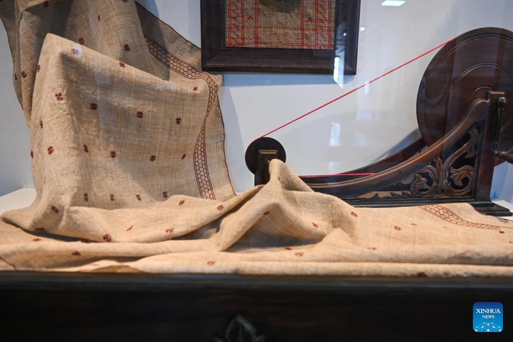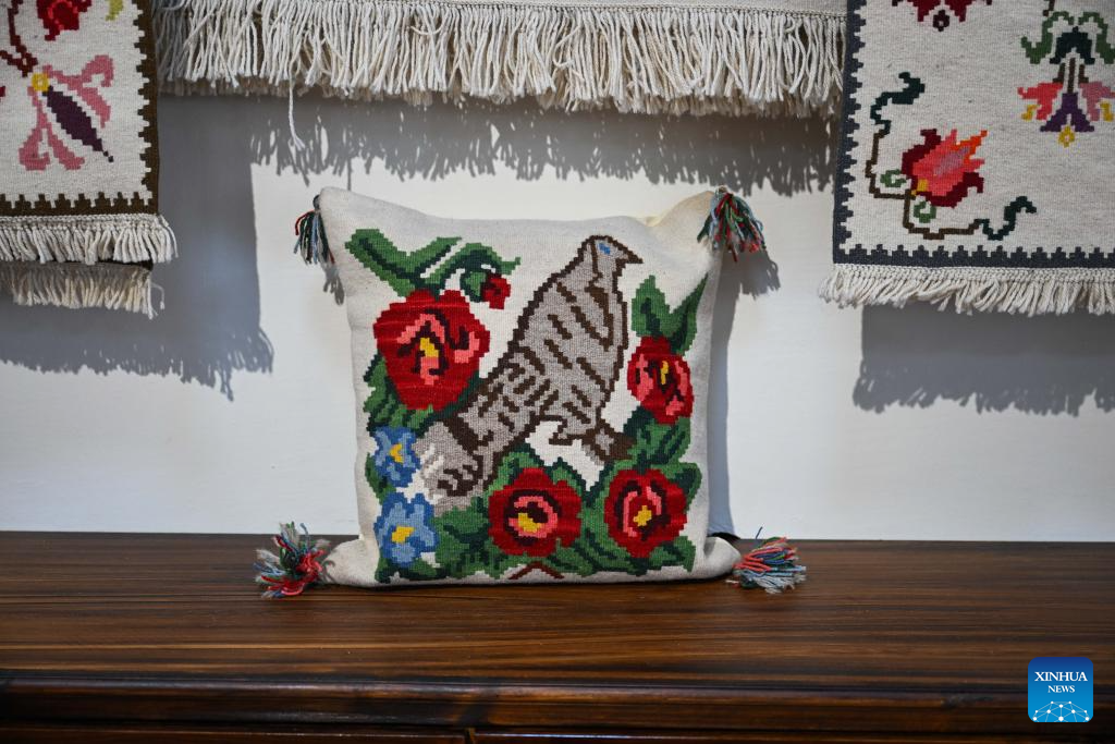 This photo taken on April 25, 2025 shows the products of Ehram at the Erzurum Maturation Institute in Erzurum, Türkiye. Erzurum, a province in northeastern Türkiye, has a long-standing tradition of wool weaving. Since the 1850s, Ehram, a finely spun wool fabric, has become a renowned local specialty. The production of Ehram involves multiple intricate processes. Initially utilized for women's garments, it has since been adapted for a variety of accessories, including handbags and belts. In recent years, the local government has actively promoted and supported the transmission and training of this textile craft to create more employment opportunities. (Xinhua/Liu Lei)