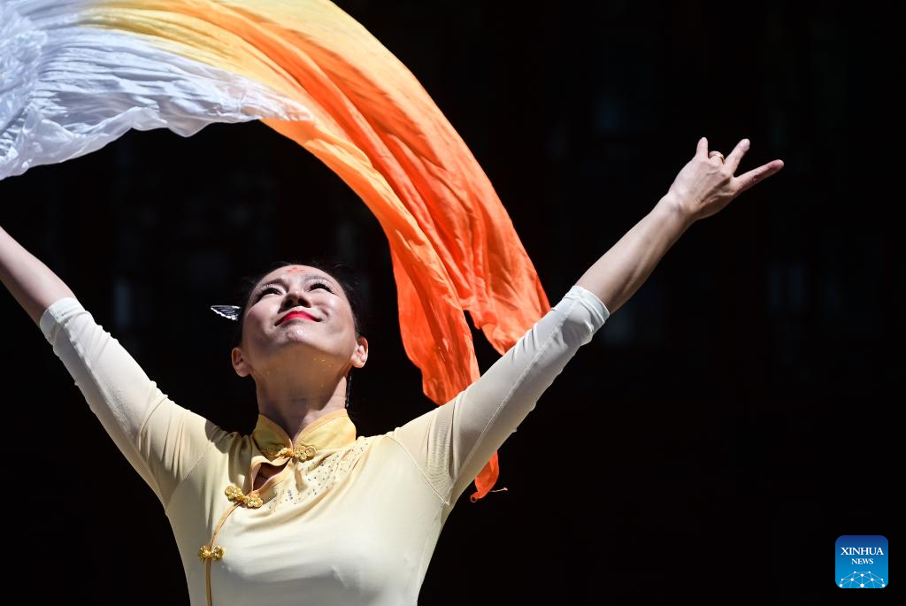 A Chinese artist performs dance at the Garden of Serenity in Santa Lucija, Malta, on April 27, 2025.(Photo by Jonathan Borg/Xinhua)