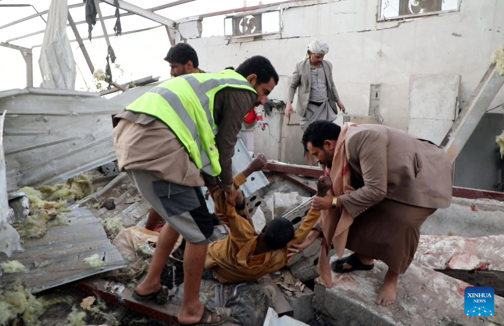 SANAA, April 28 (Xinhua) -- The Houthis, who control much of northern Yemen, said U.S. airstrikes early Monday on a detention center in the northern province of Saada killed at least 30 African migrants and wounded 50 others in an initial estimate.