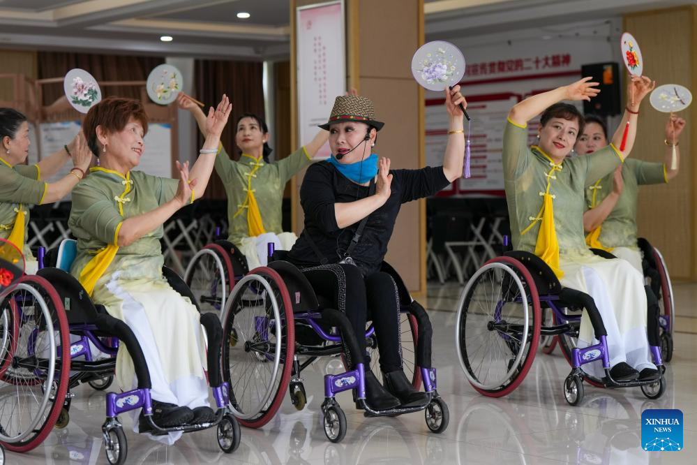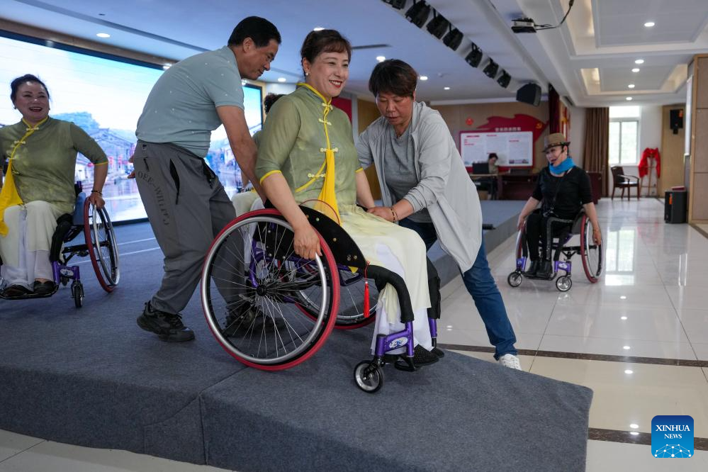 Members of a wheelchair dance team rehearse in Nanjing, east China's Jiangsu Province, April 27, 2025.