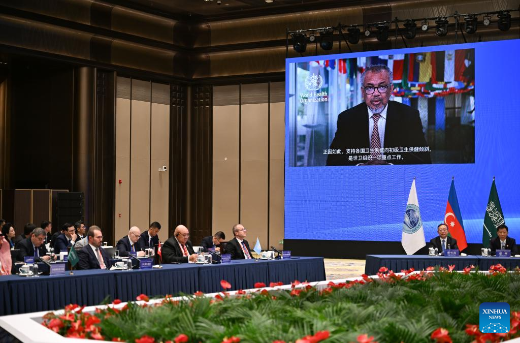 World Health Organization Director-General Tedros Adhanom Ghebreyesus delivered a video address while SCO Secretary-General Nurlan Yermekbayev gave a speech at the opening ceremony.