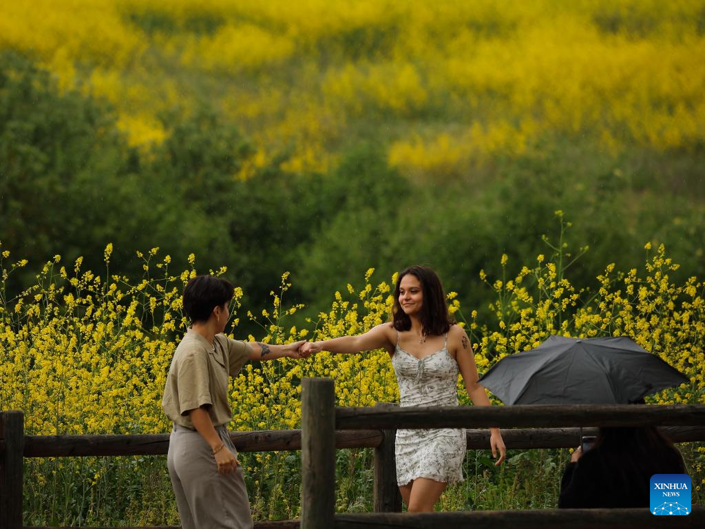 People visit Chino Hills State Park with rolling hills covered with wild flowers in Chino Hills, California, the United States, on April 27, 2025. (Photo by Qiu Chen/Xinhua)