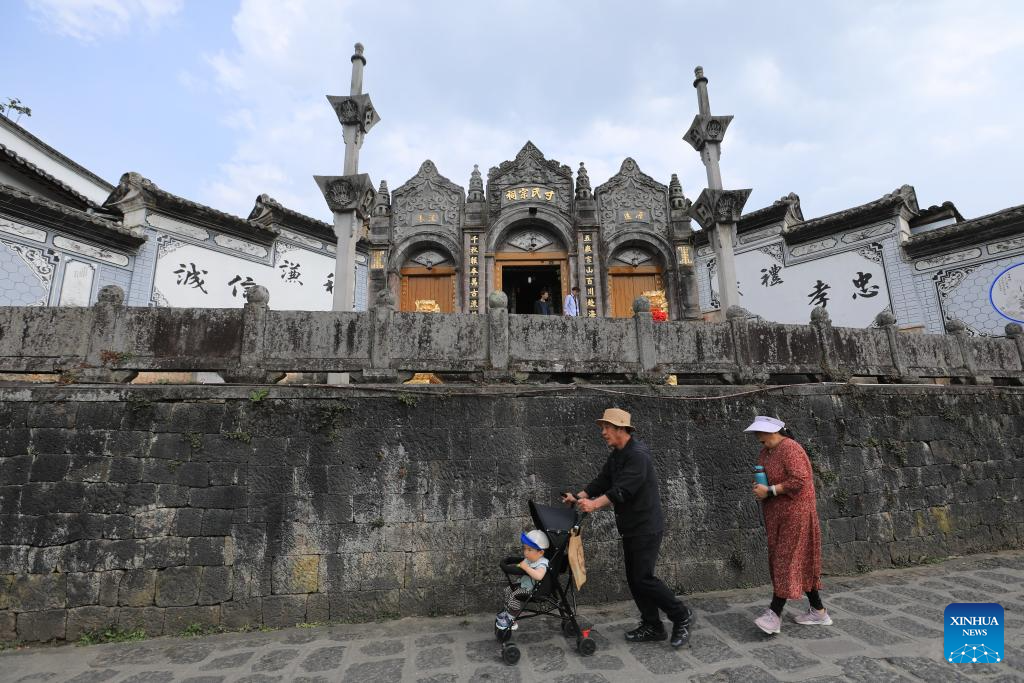 Residents walk past the Ancestral Hall of the Cun Clan, part of which is built with volcanic rocks, in Tengchong, southwest China's Yunnan Province, April 23, 2025. Home to 99 active and extinct volcanoes, Tengchong is rich in geothermal resources. The city's environment is known by locals as being "half water half fire," a feature that has been utilized to develop tourism. (Photo by Gong Zujin/Xinhua)
