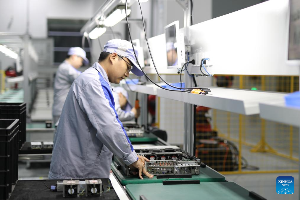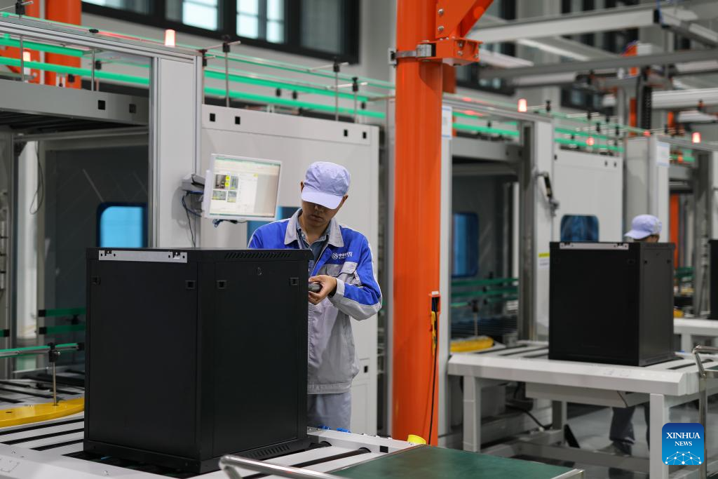 An employee works at a company providing data solutions for satellite internet in Hebi, central China's Henan Province, April 21, 2025.(Xinhua/Du Xiaoyi)