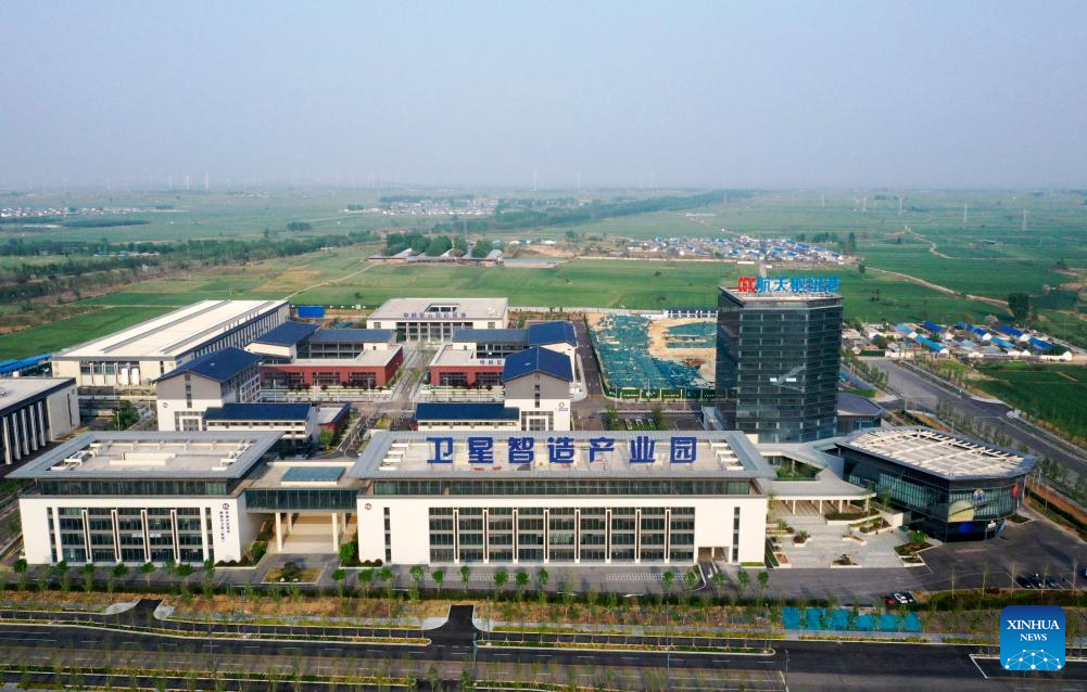 A drone photo take on April 20, 2025 shows a satellite manufacturing industrial park in Hebi, central China's Henan Province.(Xinhua/Li Jianan)