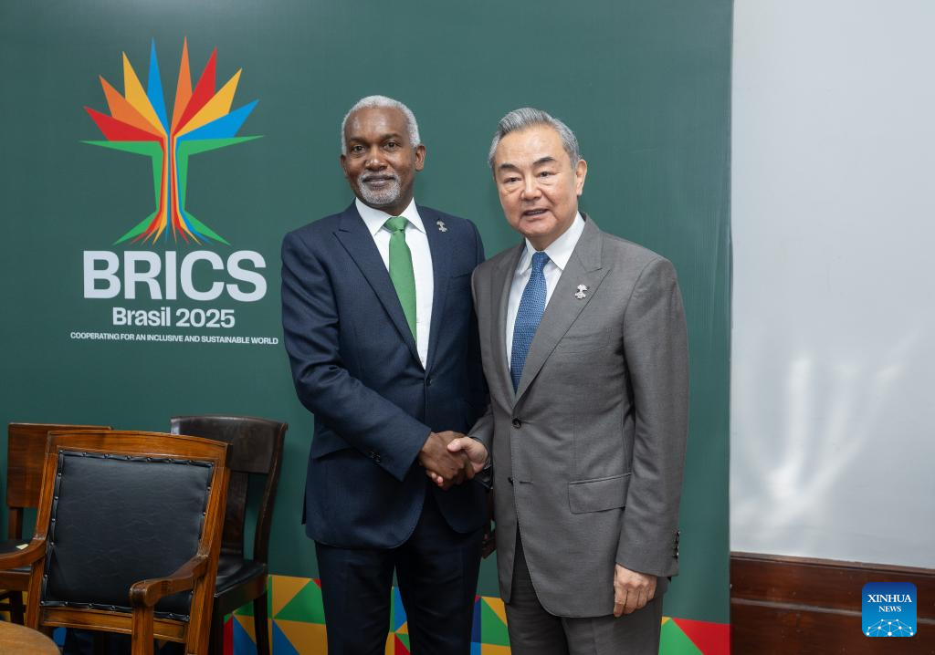 Chinese Foreign Minister Wang Yi, also a member of the Political Bureau of the Communist Party of China Central Committee, meets with Nigerian Foreign Minister Yusuf Tuggar in Rio de Janeiro, Brazil, April 29, 2025. (Xinhua/Wang Tiancong)
