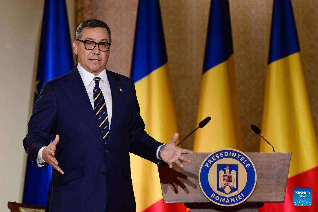 Victor Ponta, candidate for Romania's presidency, speaks during an electoral debate organised by Romania's state television channel at the Cotroceni palace in Bucharest, Romania, April 29, 2025. Romanians will vote in the first round of presidential elections on May 4. (Photo by Cristian Cristel/Xinhua)