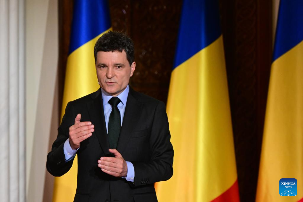 Cristian Terhes, candidate for Romania's presidency, speaks during an electoral debate organised by Romania's state television channel at the Cotroceni palace in Bucharest, Romania, April 29, 2025. Romanians will vote in the first round of presidential elections on May 4. (Photo by Cristian Cristel/Xinhua)
