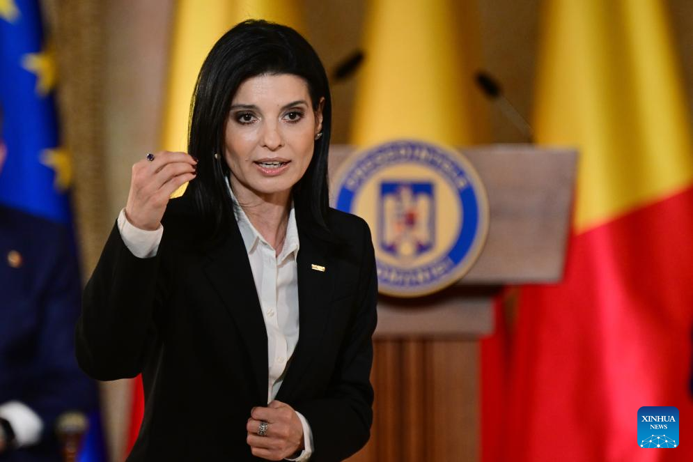 Lavinia Sandru, candidate for Romania's presidency, speaks during an electoral debate organised by Romania's state television channel at the Cotroceni palace in Bucharest, Romania, April 29, 2025. Romanians will vote in the first round of presidential elections on May 4. (Photo by Cristian Cristel/Xinhua)