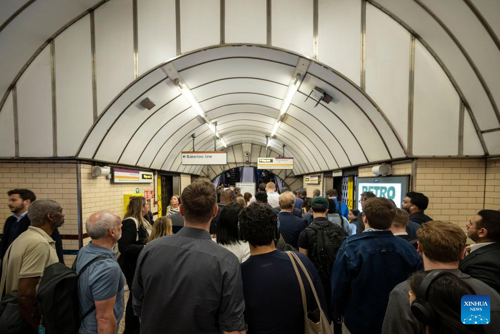 Commuters are seen at Baker Street station in London, Britain, on May 12, 2025. A power outage struck the London Underground, causing widespread travel disruptions across the capital on Monday afternoon, Transport for London (TfL) confirmed. (Photo by Stephen Chung/Xinhua)