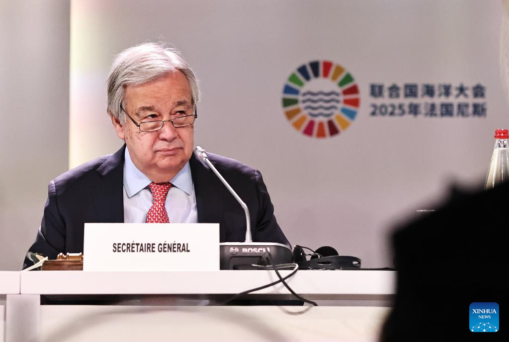 UN Secretary-General Antonio Guterres attends the opening session of the third United Nations Ocean Conference (UNOC3) in Nice, France, June 9, 2025. The third United Nations Ocean Conference (UNOC3) opened on Monday in Nice, a coastal city in southern France, under the theme of "Accelerating action and mobilizing all actors to conserve and sustainably use the ocean". (Xinhua/Gao Jing)