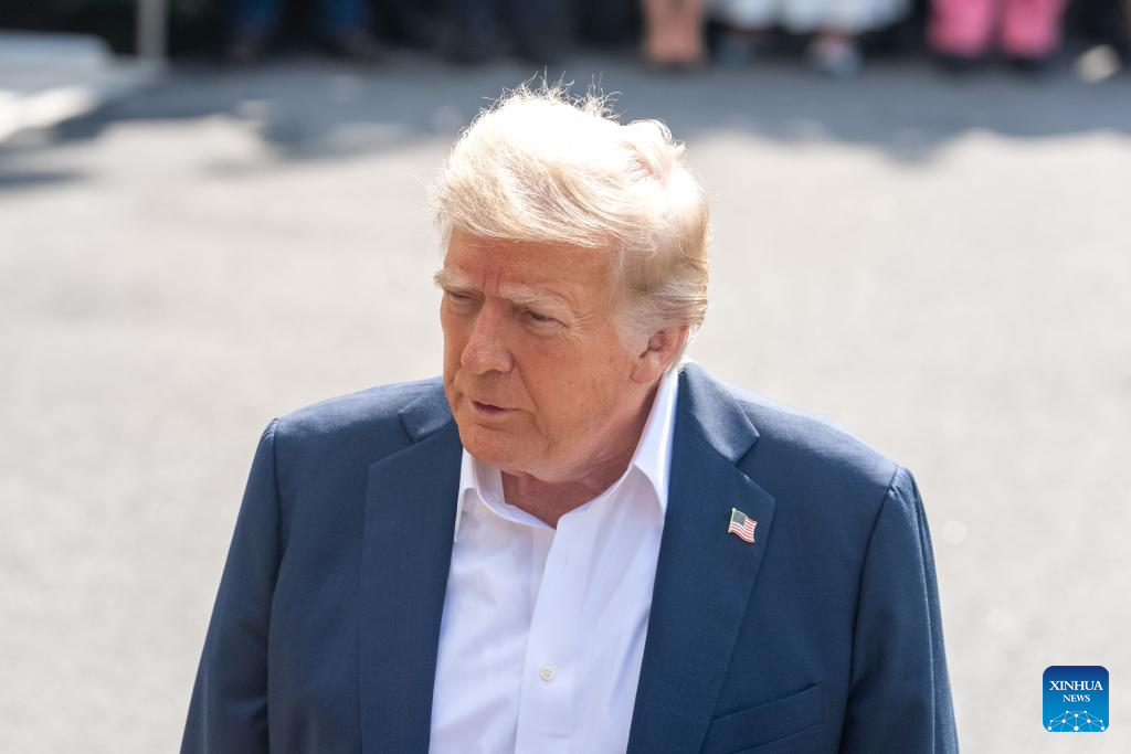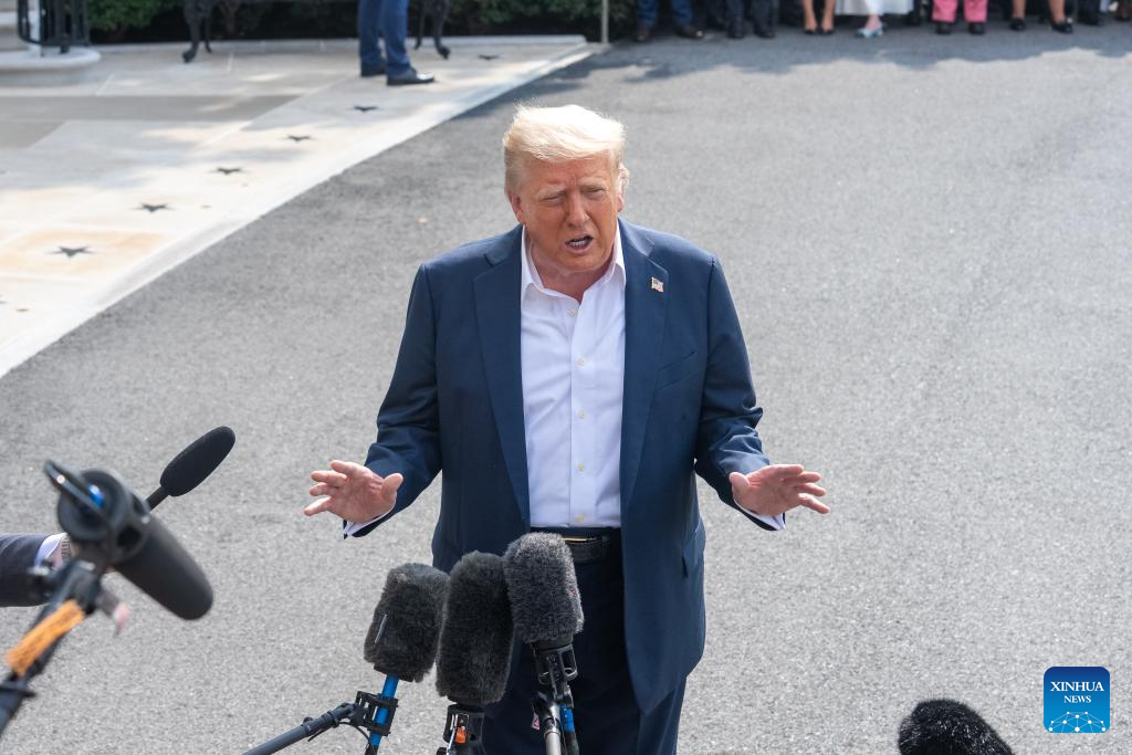U.S. President Donald Trump speaks to the press before departing for Texas at the White House in Washington, D.C., the United States, on July 11, 2025. It is not on the agenda of the White House to abolish the Federal Emergency Management Agency (FEMA) outright, The Washington Post on Friday cited an official source, as U.S. President Donald Trump travels to Texas to view the impact of last week's deadly floods. (Xinhua/Hu Yousong)