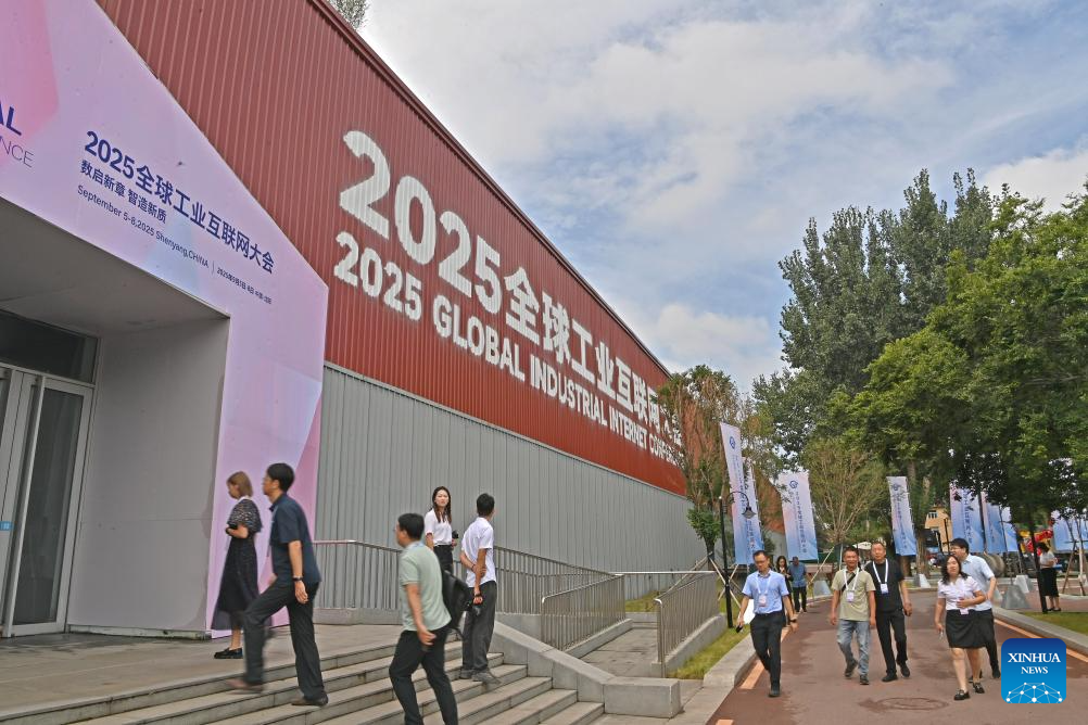 This photo taken on Sept. 6, 2025 shows a view of the 2025 Global Industrial Internet Conference in Shenyang, northeast China's Liaoning Province. Themed "Digital New Chapter, Intelligent New Quality," the 2025 Global Industrial Internet Conference kicked off here on Saturday and will last till Sept. 8. (Xinhua/Zhou Hua)