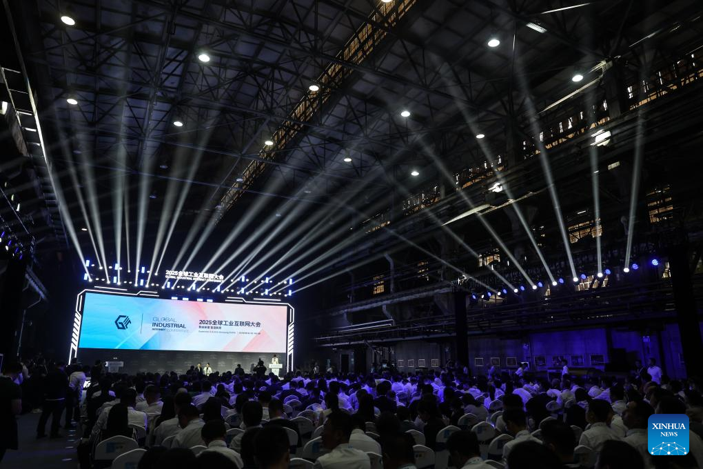 This photo taken on Sept. 6, 2025 shows the opening ceremony of the 2025 Global Industrial Internet Conference in Shenyang, northeast China's Liaoning Province. Themed "Digital New Chapter, Intelligent New Quality," the 2025 Global Industrial Internet Conference kicked off here on Saturday and will last till Sept. 8. (Xinhua/Yang Qing)