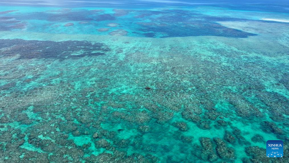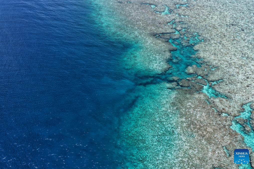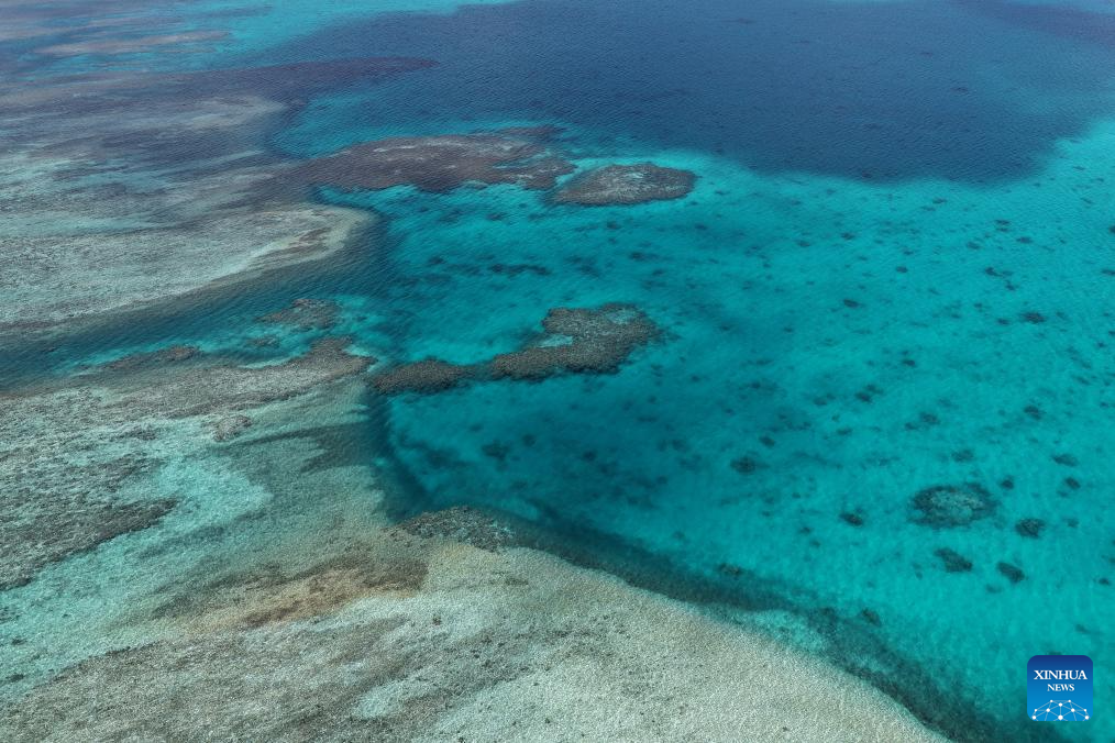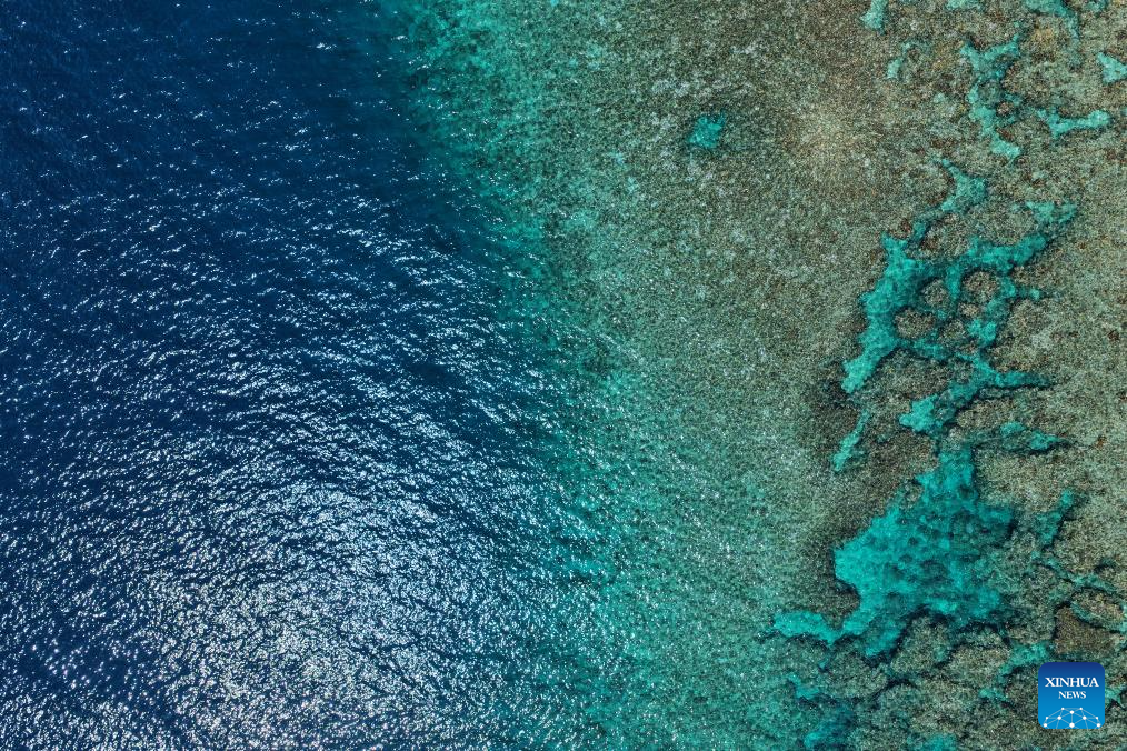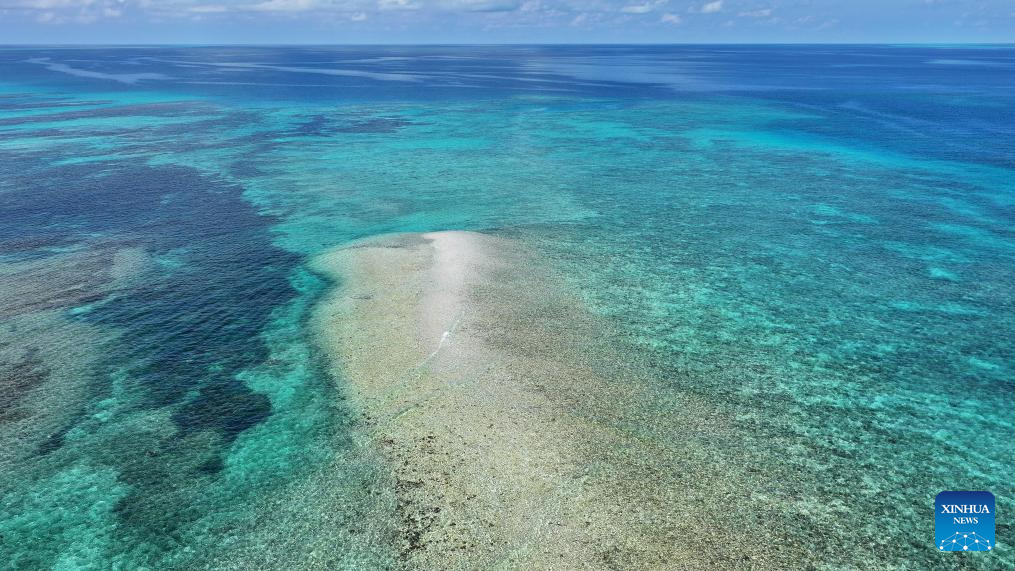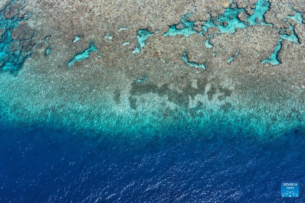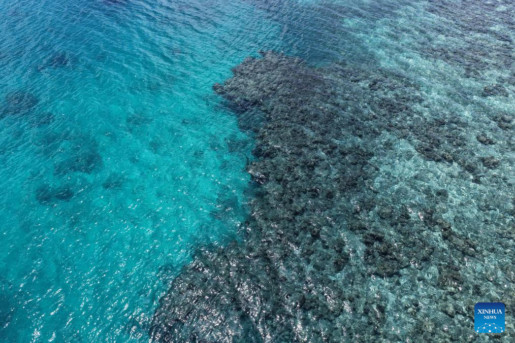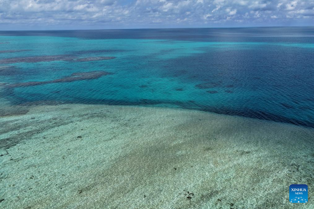 An aerial drone photo taken on Oct. 2, 2025 shows a view of the China's Huangyan Dao national nature reserve in the South China Sea. (Xinhua)