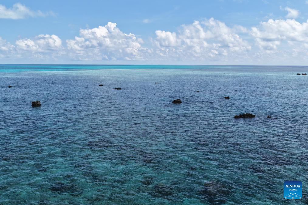 This photo taken with a mobile phone on Oct. 2, 2025 shows a view of the China's Huangyan Dao national nature reserve in the South China Sea. (Xinhua)