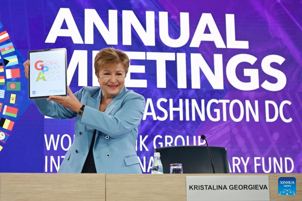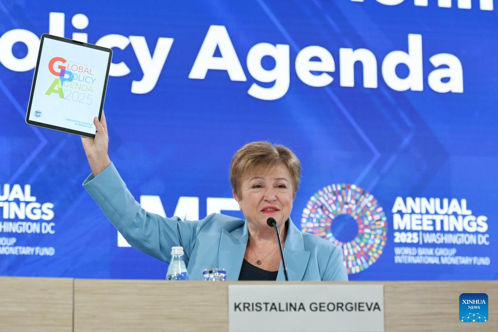 International Monetary Fund (IMF) Managing Director Kristalina Georgieva speaks at the managing director's briefing on the Global Policy Agenda in Washington, D.C., the United States, Oct. 16, 2025. (Xinhua/Li Rui)
