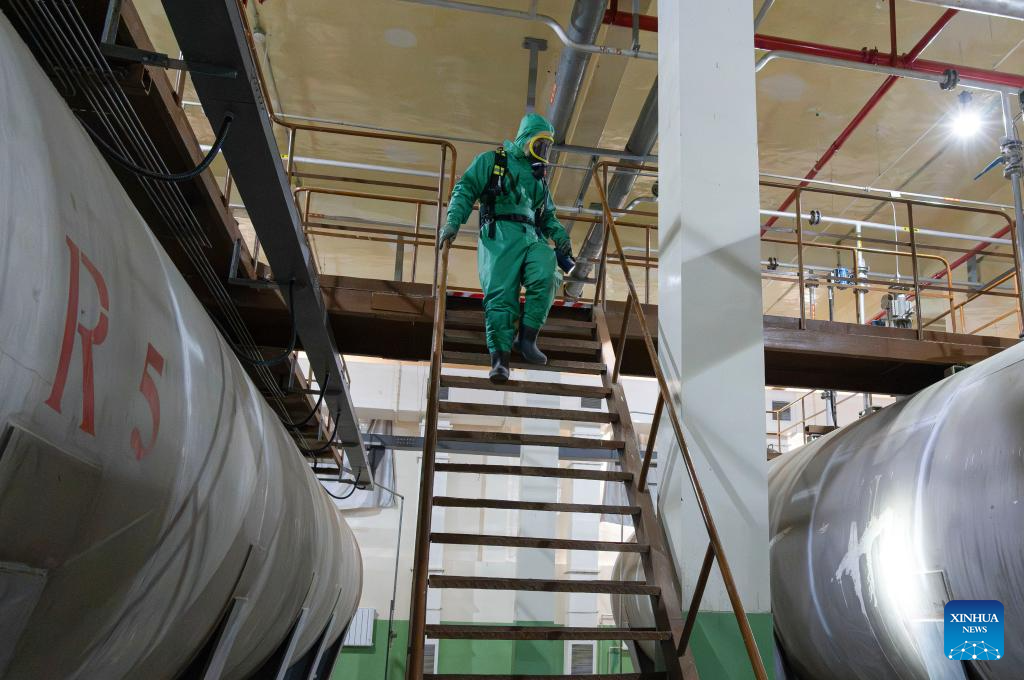 A staff member conducts pre-loading inspections of propellant in the loading area of Shenzhou-22 spaceship on Nov. 24, 2025. China on Tuesday launched the Shenzhou-22 spaceship to provide a return vessel for the three Shenzhou-21 astronauts in orbit. This momentous occasion marked the accomplishment of the first emergency launch mission in the country's manned space program.