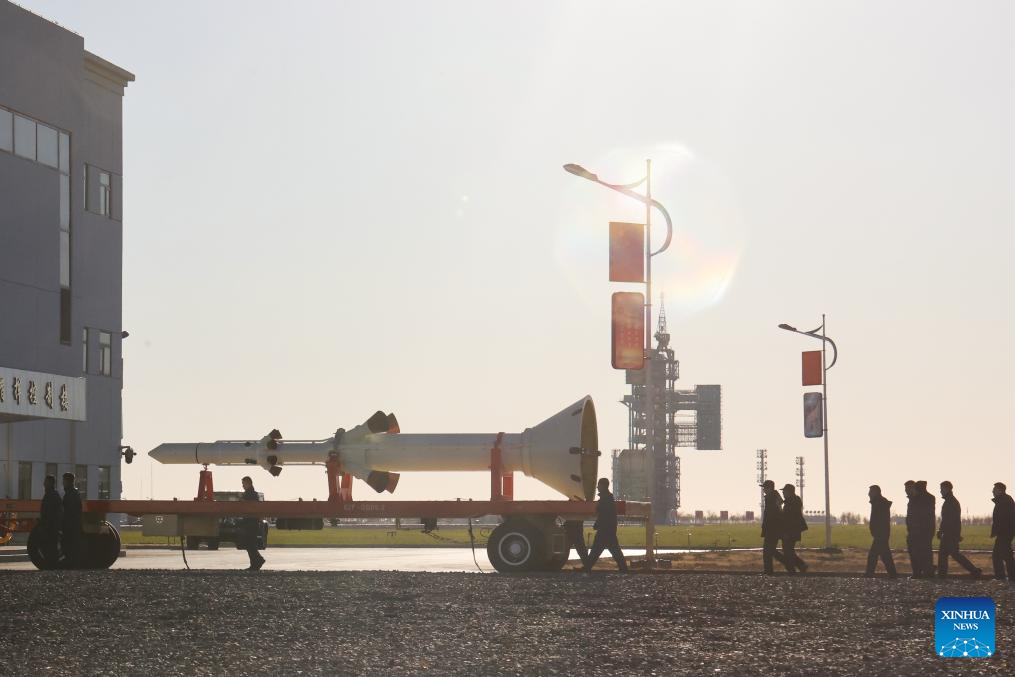 The escape tower is being transferred on Nov. 18, 2025. China on Tuesday launched the Shenzhou-22 spaceship to provide a return vessel for the three Shenzhou-21 astronauts in orbit. This momentous occasion marked the accomplishment of the first emergency launch mission in the country's manned space program.