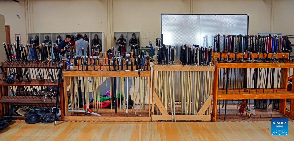 This photo shows German martial arts equipment and teaching equipment at the Shanghai Historical Martial Arts (SHMA) club in Shanghai, east China, Nov. 22, 2025. (Xinhua/Liu Ying)