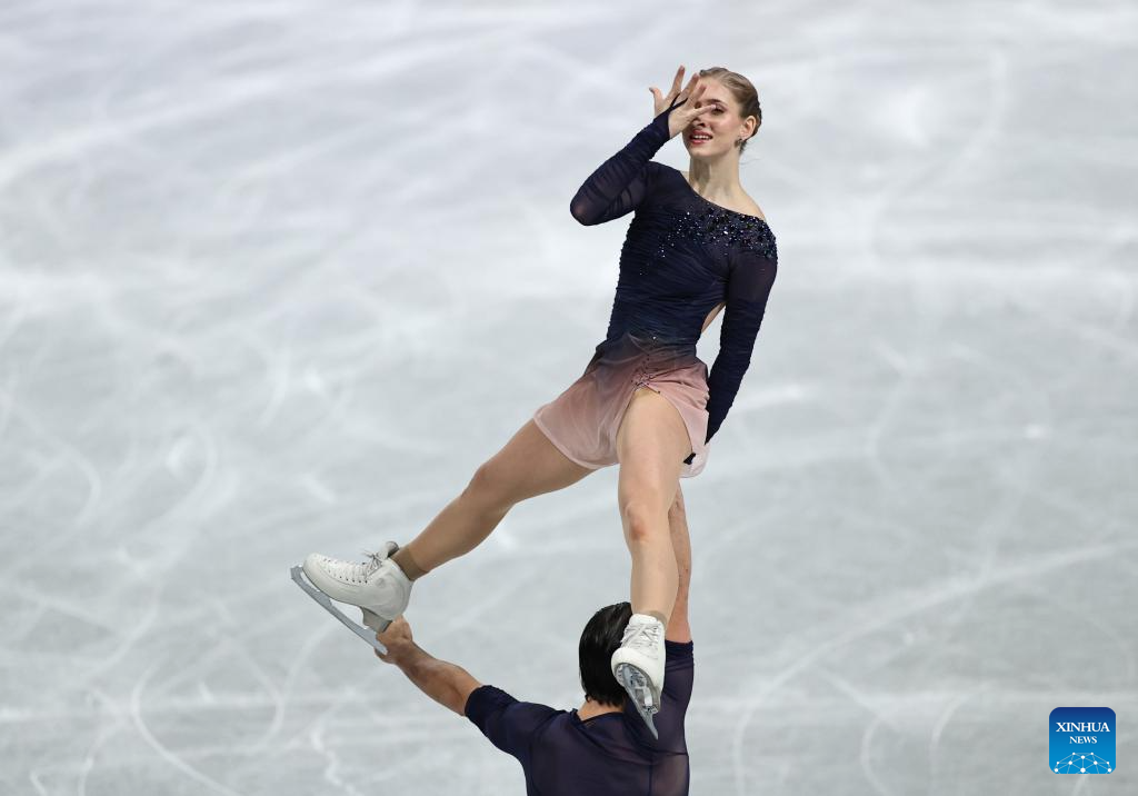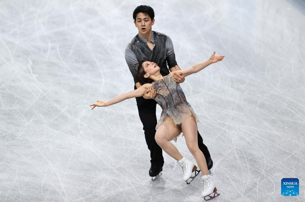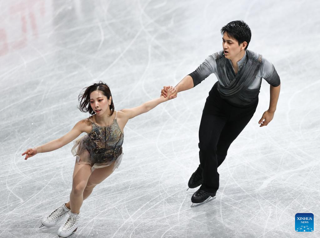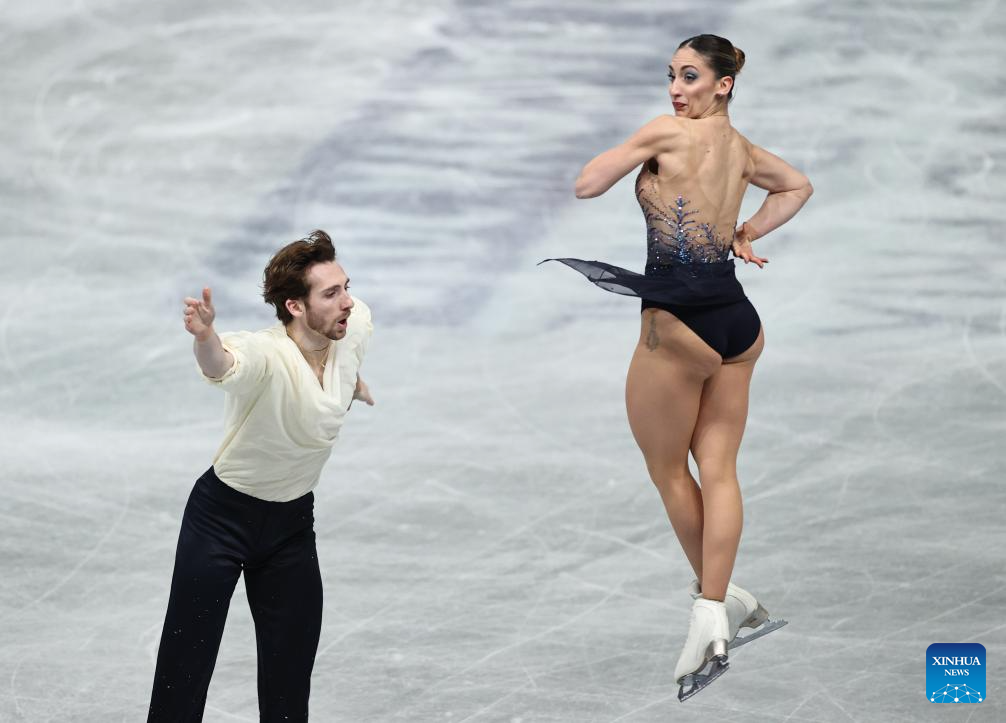 Sara Conti (L)/Niccolo Macii of Italy compete during the pair skating free skating at ISU Grand Prix of Figure Skating Final 2025 in Nagoya, Japan, Dec. 5, 2025. (Xinhua/Yue Chenxing)