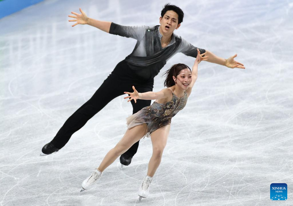 Miura Riku (L)/Kihara Ryuichi of Japan compete during the pair skating free skating at ISU Grand Prix of Figure Skating Final 2025 in Nagoya, Japan, Dec. 5, 2025. (Xinhua/Yue Chenxing)