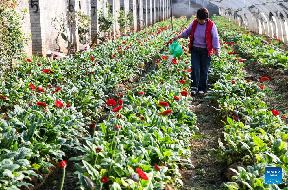 A farmer works at a flower greenhouse in Jiyuan City, central China's Henan Province, Dec. 6, 2025. As the solar term of Major Snow, also known as "Da Xue" in Chinese, is approaching, farmers are busy with agricultural production across the country. (Photo by Miao Qiunao/Xinhua)