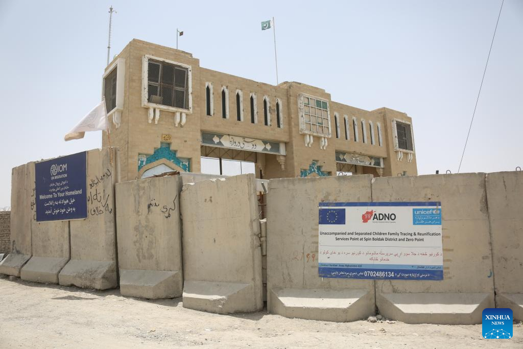 This photo taken on June 15, 2025 shows an undamaged "Friendship Gate" in the border town of Spin Boldak in Kandahar province of southern Afghanistan. Five people were killed and five others sustained injuries due to a clash that erupted between Pakistan and Afghan forces in the border town of Spin Boldak in southern Afghanistan's Kandahar province, Spin Boldak district chief Mawlawi Abdul Karim Jihadyar said Saturday.